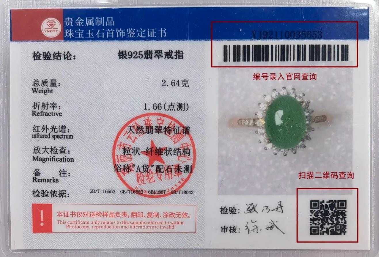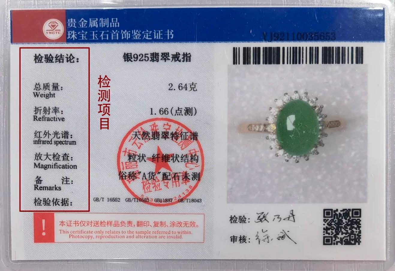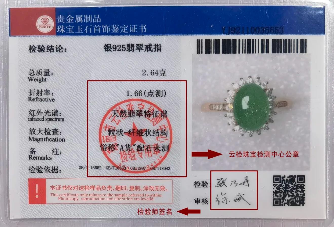 球客直播 珠宝玉石首饰鉴定证书背面有单位公章和检验师签名
